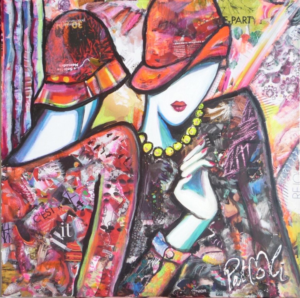 In this painting PatMoli explores a rare, intimate subject, that of the bond of a secret. In a gentle shrug of the shoulders, the proximity of their faces, and the elliptical shape of their hands,the artist describes women. All women.