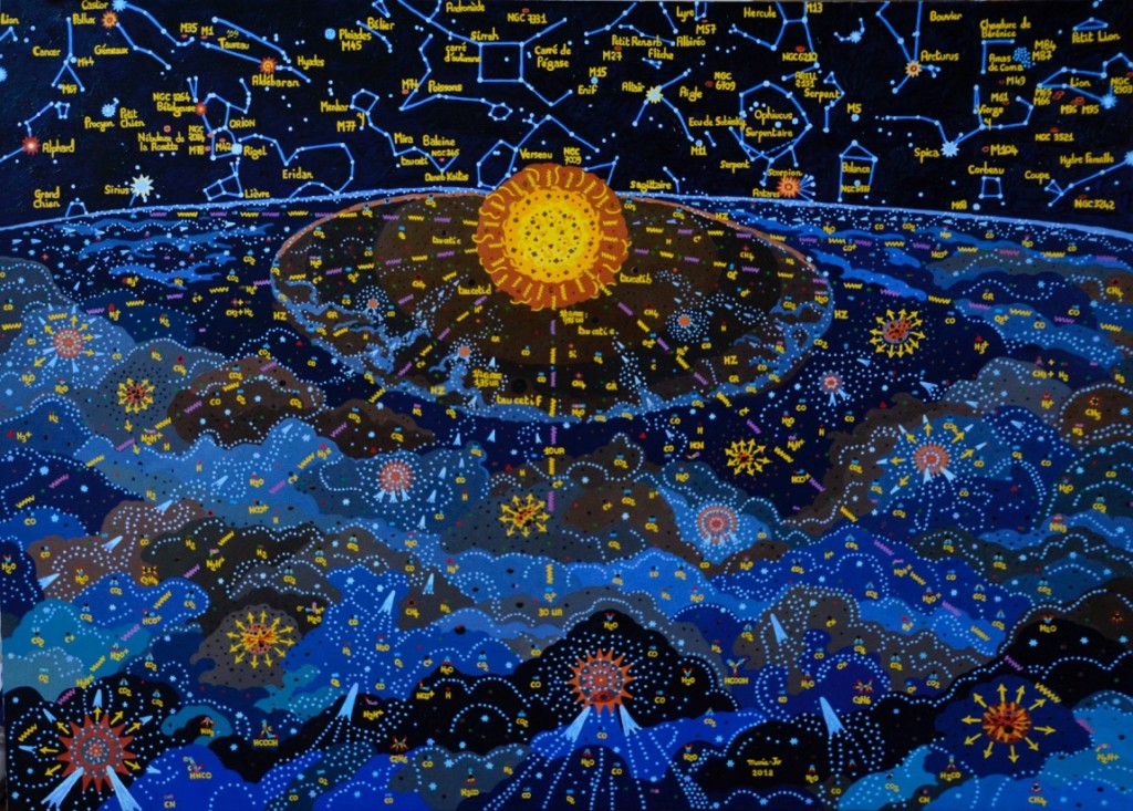 Partons dans la constellation de La Baleine à la découverte de l'étoile Tau Ceti et de son système planétaire. Cette étoile, un peu plus petite et plus froide que le soleil, possède cinq planètes de type super-terre, il y a moins d'un milliard d'années, les planètes "e" et "f" se seraient déplacées dans la zone habitable, dont le bord interne se situerait à environ 0,582 UA de l'étoile alors que le bord extérieur s'étendrait au delà de 1000 UA. Un important disque de débris a été découvert en 2004, avec de nombreuses comètes et astéroïdes. Plus d'infos sur mon site internet : mjpeintureastronomie.com, aller sur l'onglet "exoplanètes".