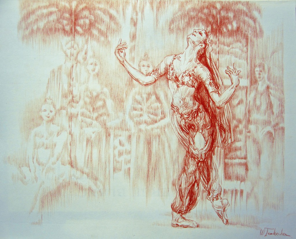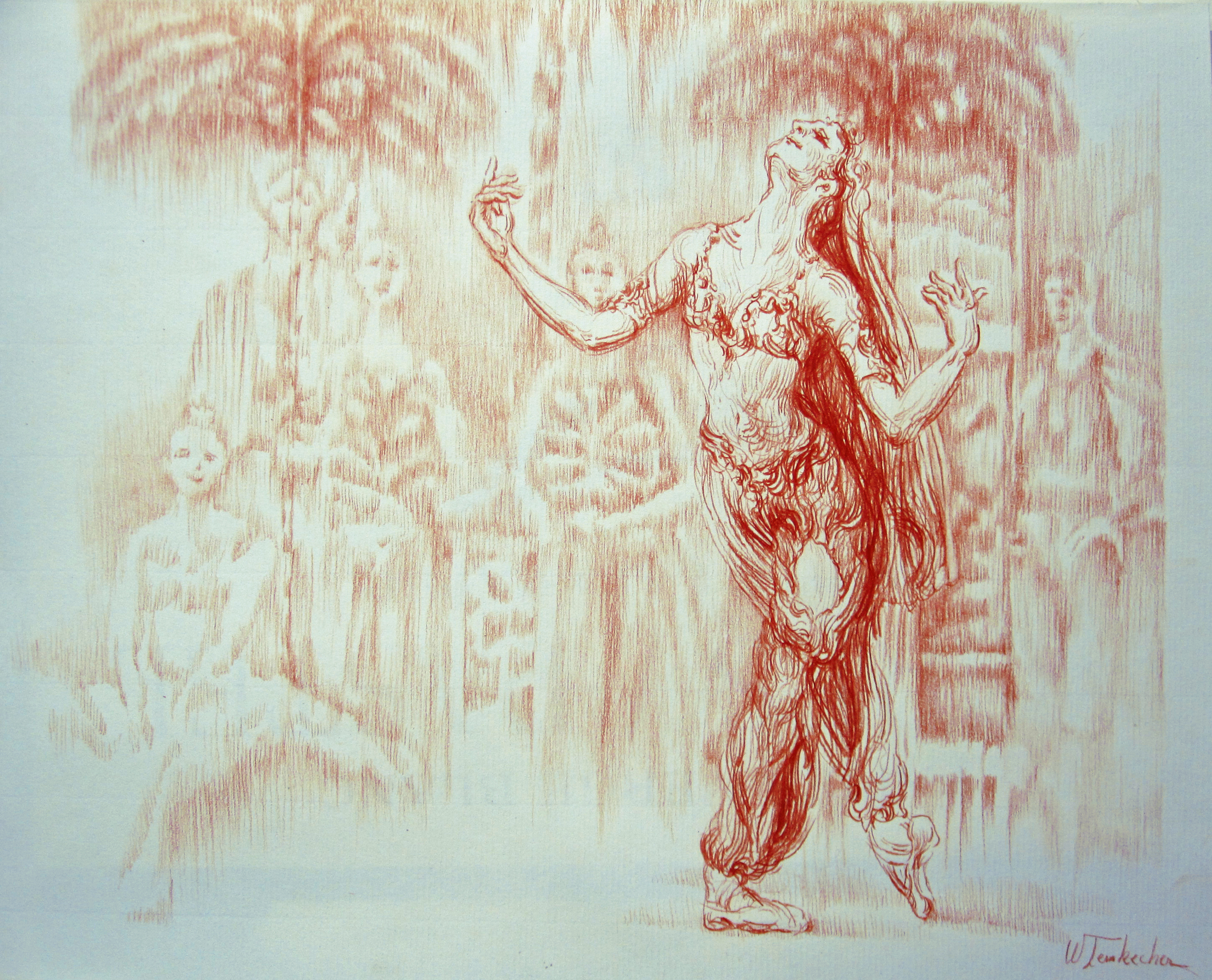 Ballet La Bayadère - La désolation de Nikiya. 30 cm - 24 cm. Crayon sanguine sur papier Ingres