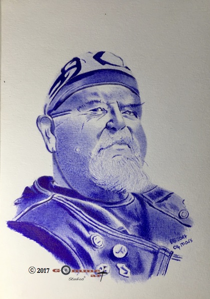 Portrait au stylo bille sur papier aquarelle.