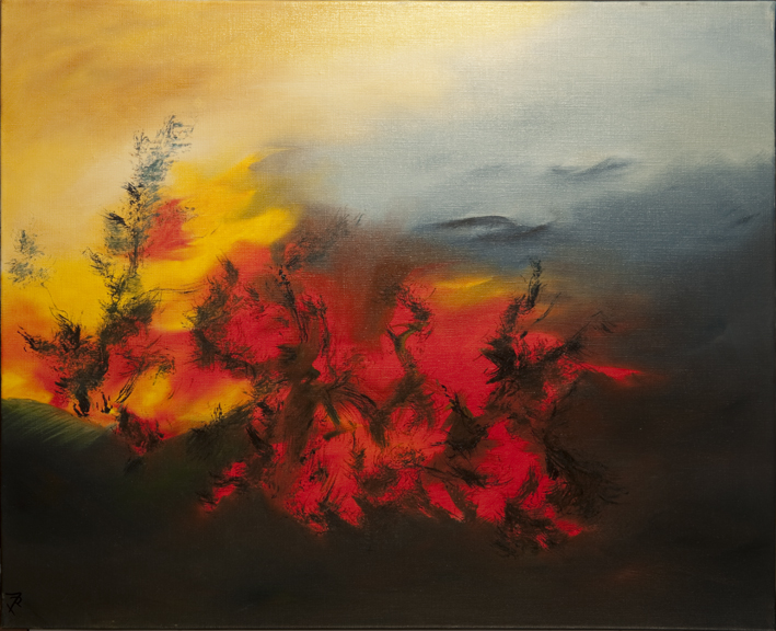 Description de l'oeuvre A l'Origine... Il brûle sans jamais se consumer... Huile à la brosse, sur toile de lin