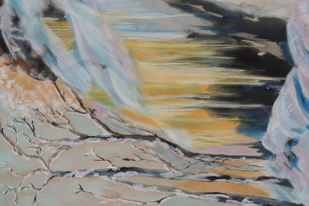 Description de l'oeuvre Technique mixte. J’ai été inspirée par le Québec ou j’ai passé beaucoup d’hivers. Mélange de différentes techniques : pastel sec, gouache, encres.