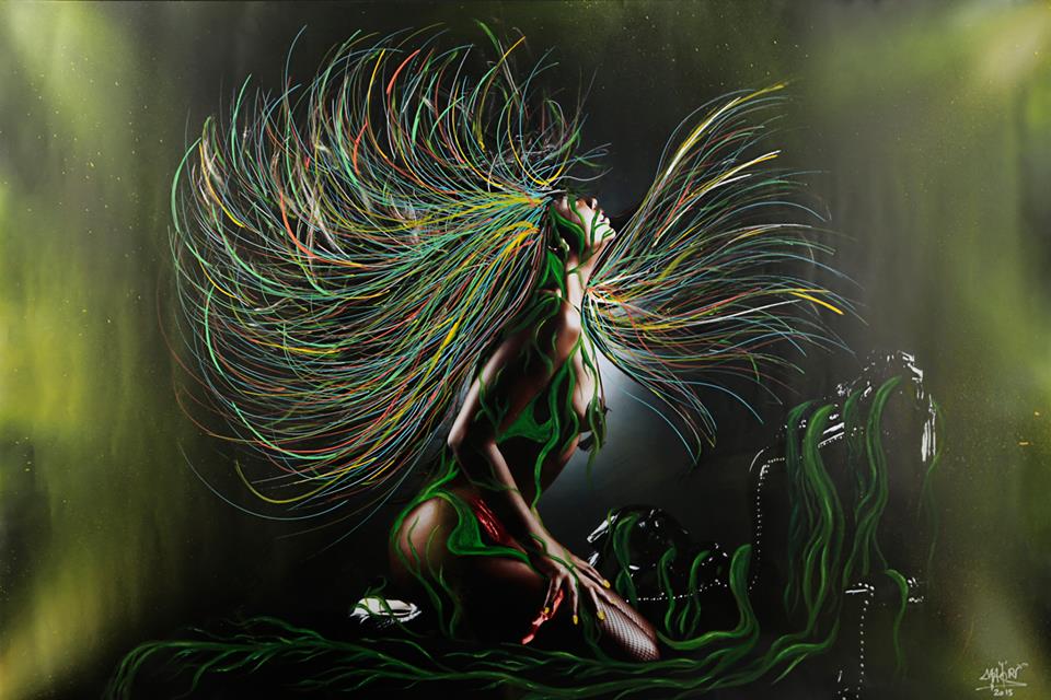 Description de l'oeuvre Peinture acrylique au pinceau et aérosol