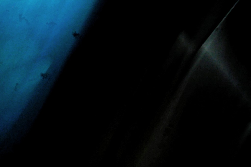 Dominance noire avec sur la partie gauche une partie bleue rappelant la surface du soleil et sur la droite un léger halo blanc faisant penser à une éruption solaire.