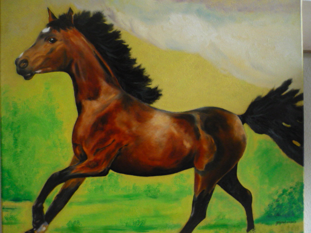 Description de l'oeuvre Suite a une promenade j'ai craqué pour ce beau cheval que j'ai posé sur une toile