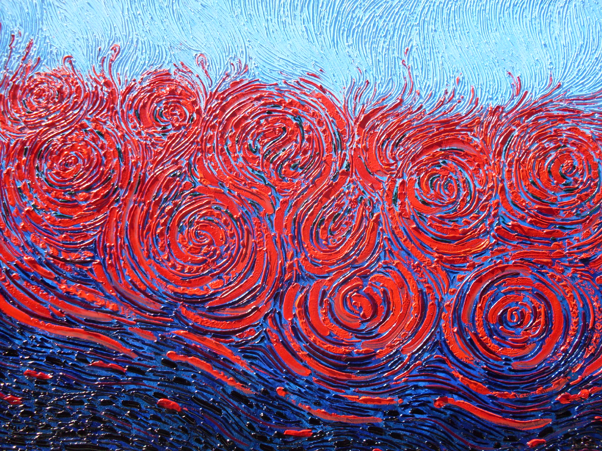 Description de l'oeuvre Le Rouge des flamboyants est prétexte au mouvement, à l'exubérance, au lyrisme.
