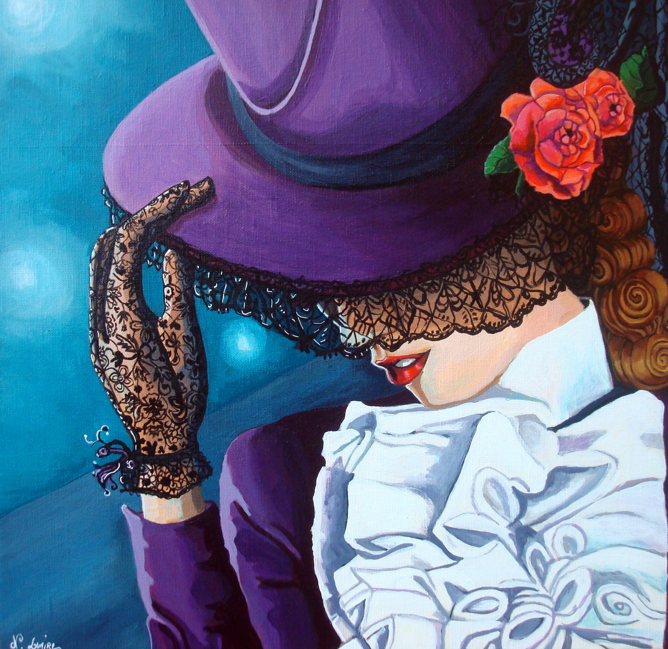 Portrait d'une femme artiste , vêtue de son habit de scène, se cache t elle des lumières?