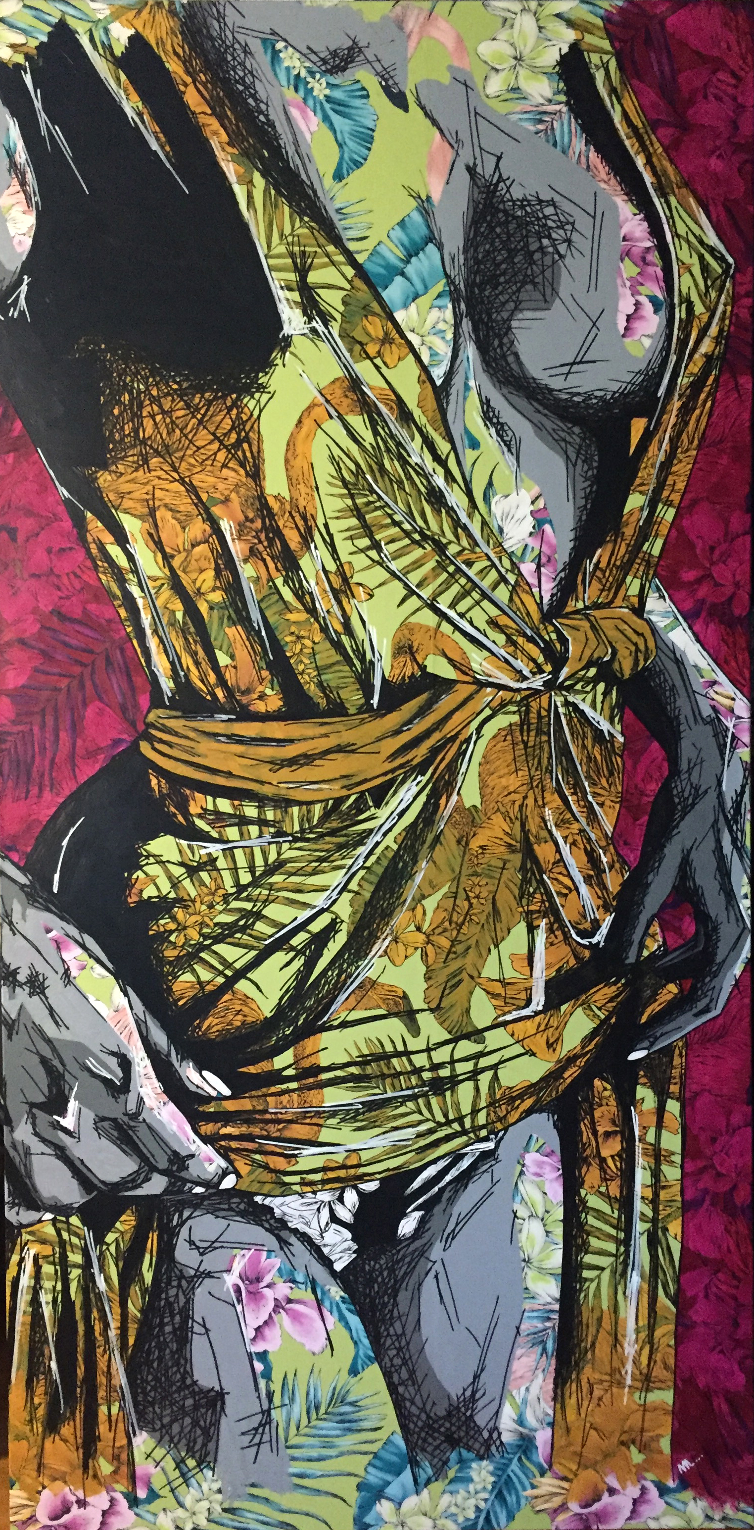 Description de l'oeuvre Acrylique et feutre sur papier-peint