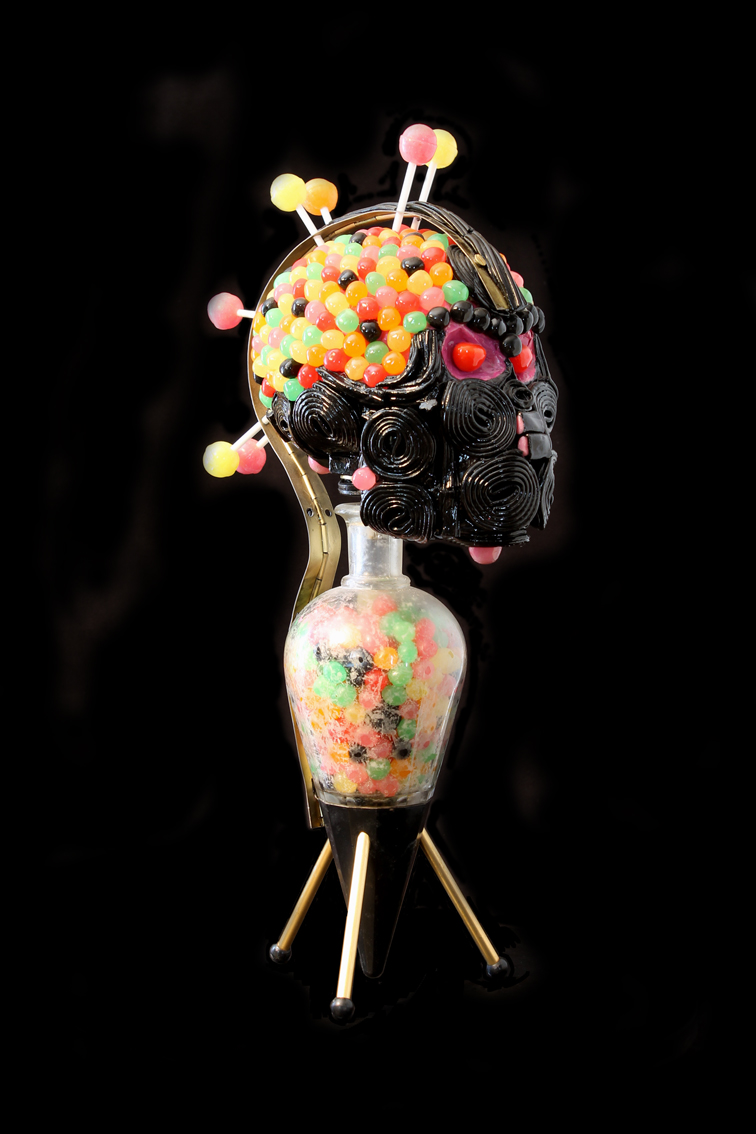 Techniques mixtes (bonbons stabilisés) sous globe en verre