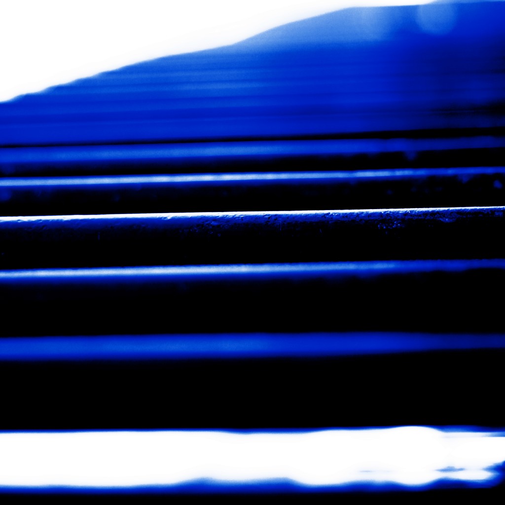 Alternance de lignes horizontales bleu soutenu et noir avec quelques touches blanches pour éclairer l'ensemble.