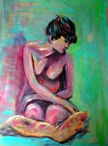 Description de l'oeuvre pose de modèle féminin nu (esquisse à l'acrylique (support craft)