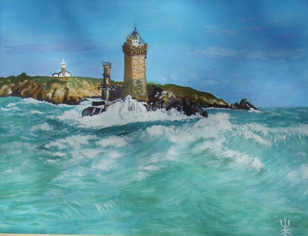 Description de l'oeuvre La mer démonté essaie de déraciner le phare du Raz de Sein