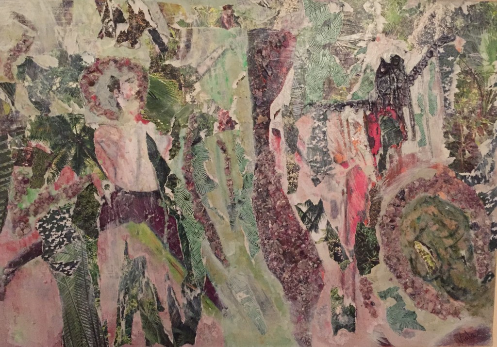 Description de l'oeuvre tableau travaillé à la peinture au collage et à la cire de bougie