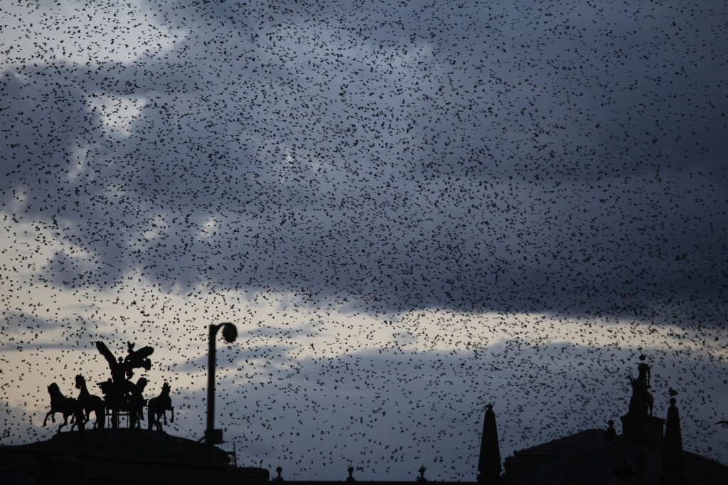 Soir d'automne sur Rome où les étourneaux ont pris possession du ciel au dessus de la Cour de cassation......