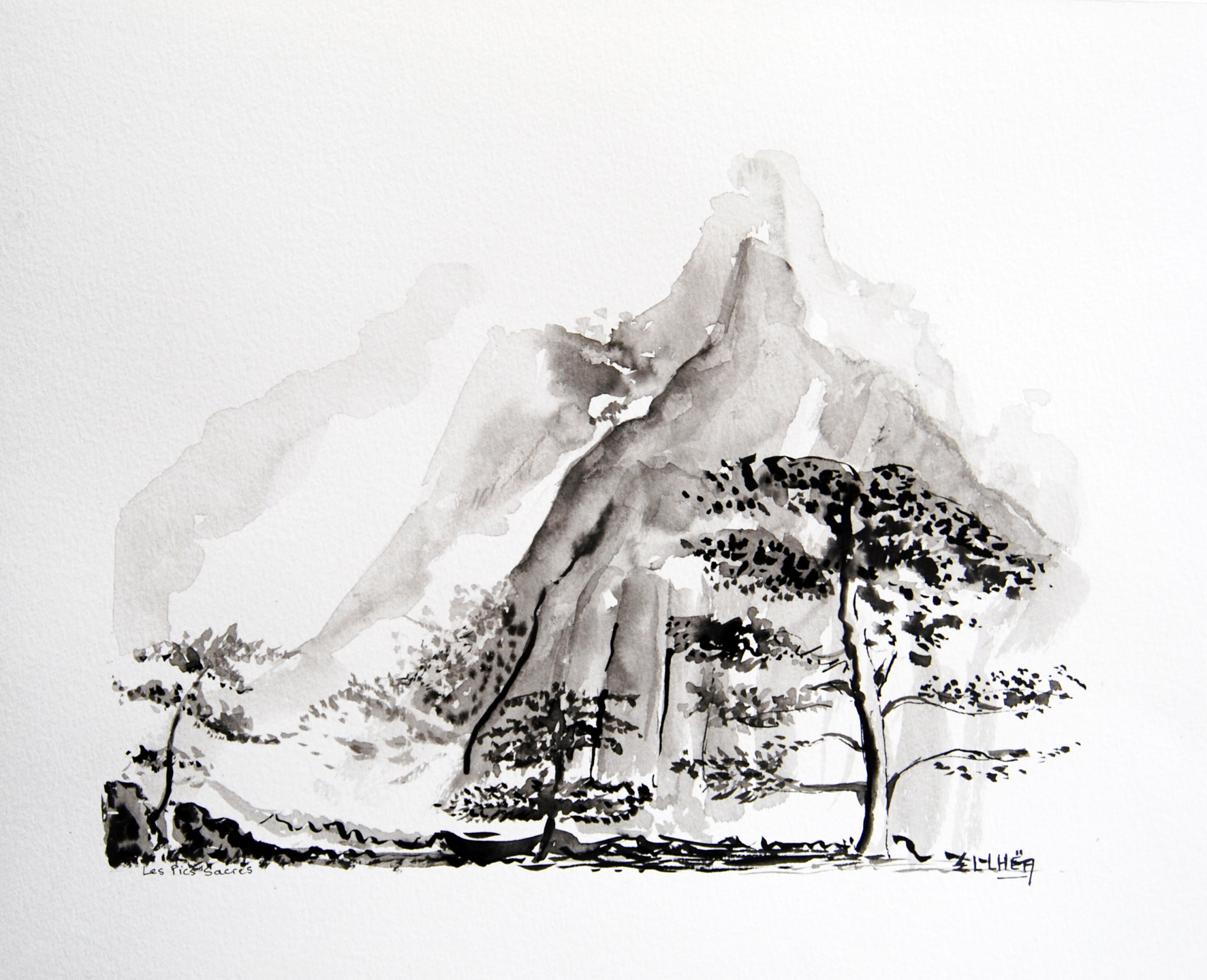 Dessin / Encre de chine, Sur papier / Paysage