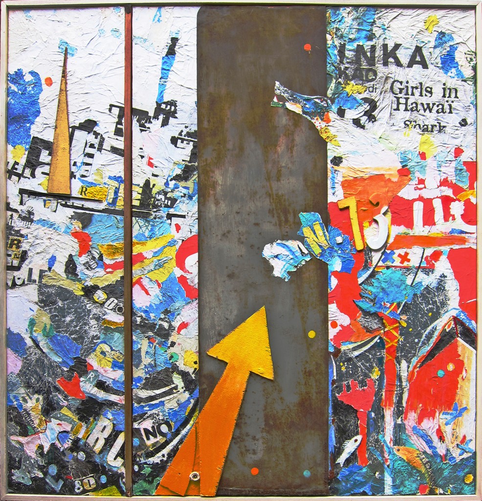 Fragments d'affiches collés sur toile de lin, peinture acrylique