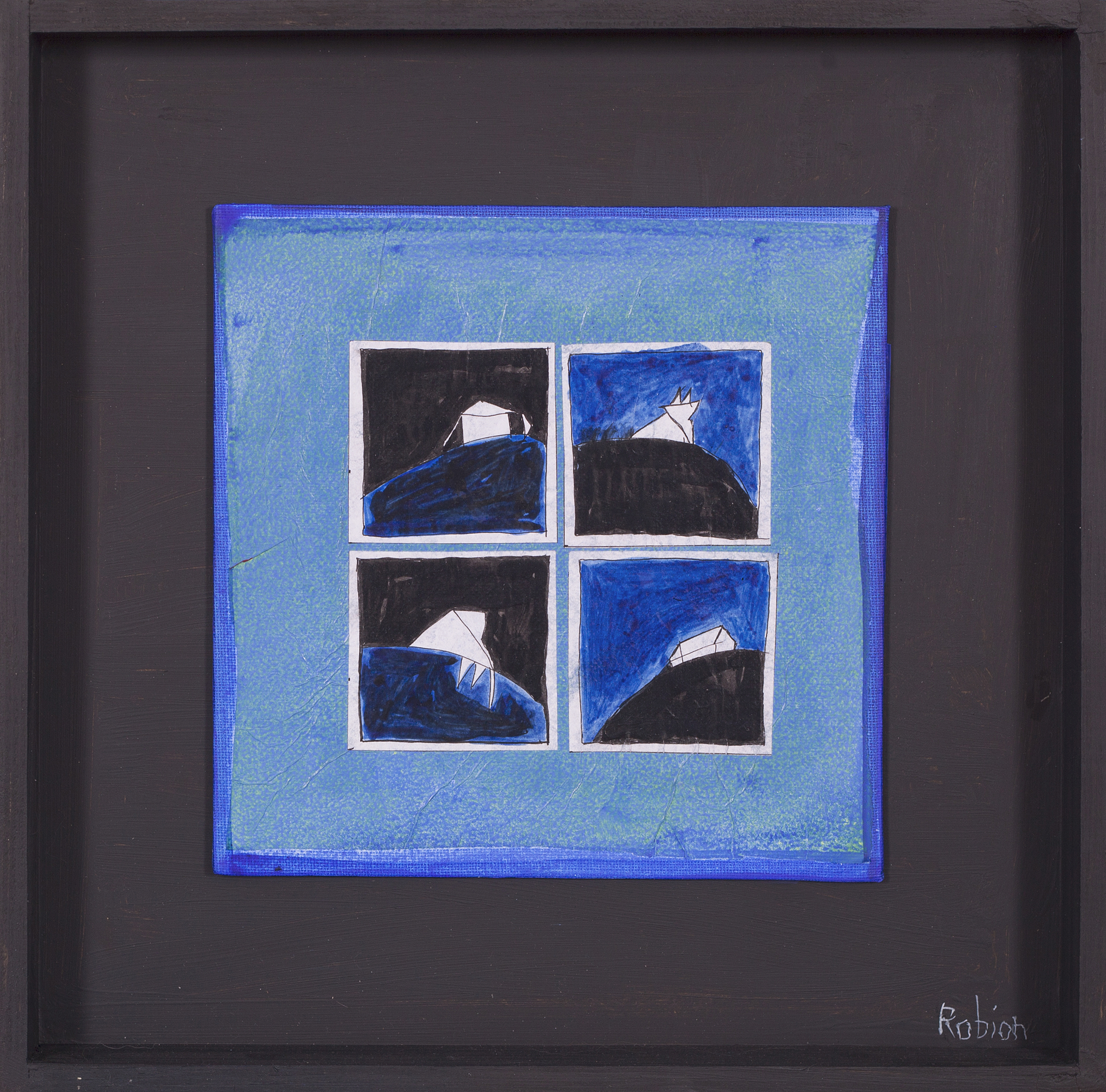 Peinture acrylique et encre sur papier et carton entoilé, boitage bois et contreplaqué, résine