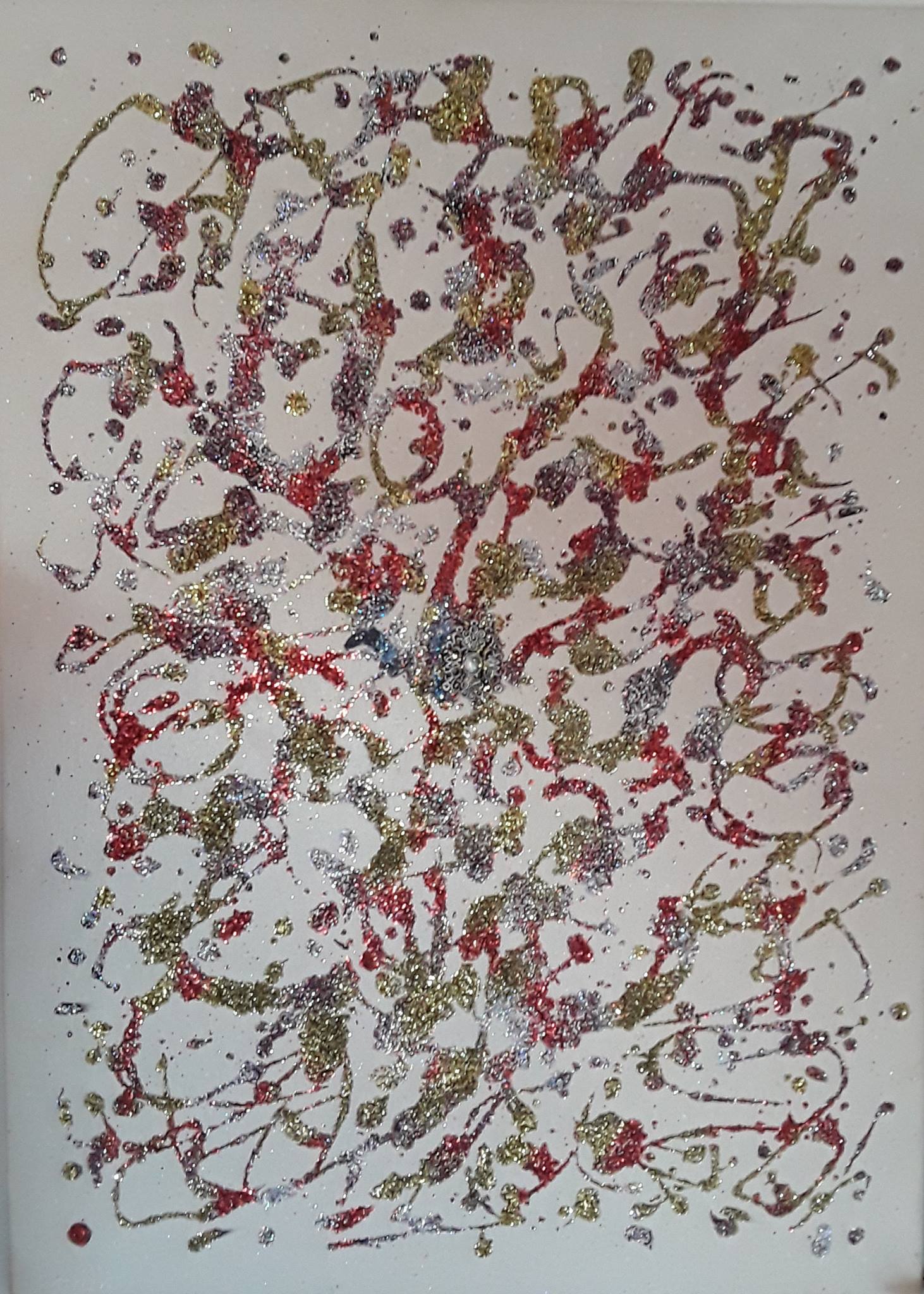 Description de l'oeuvre huile et projection de paillettes