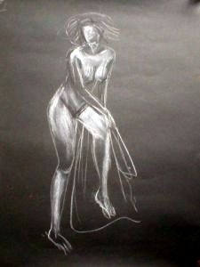 Description de l'oeuvre dessin sur papier noir modèle féminin nu_