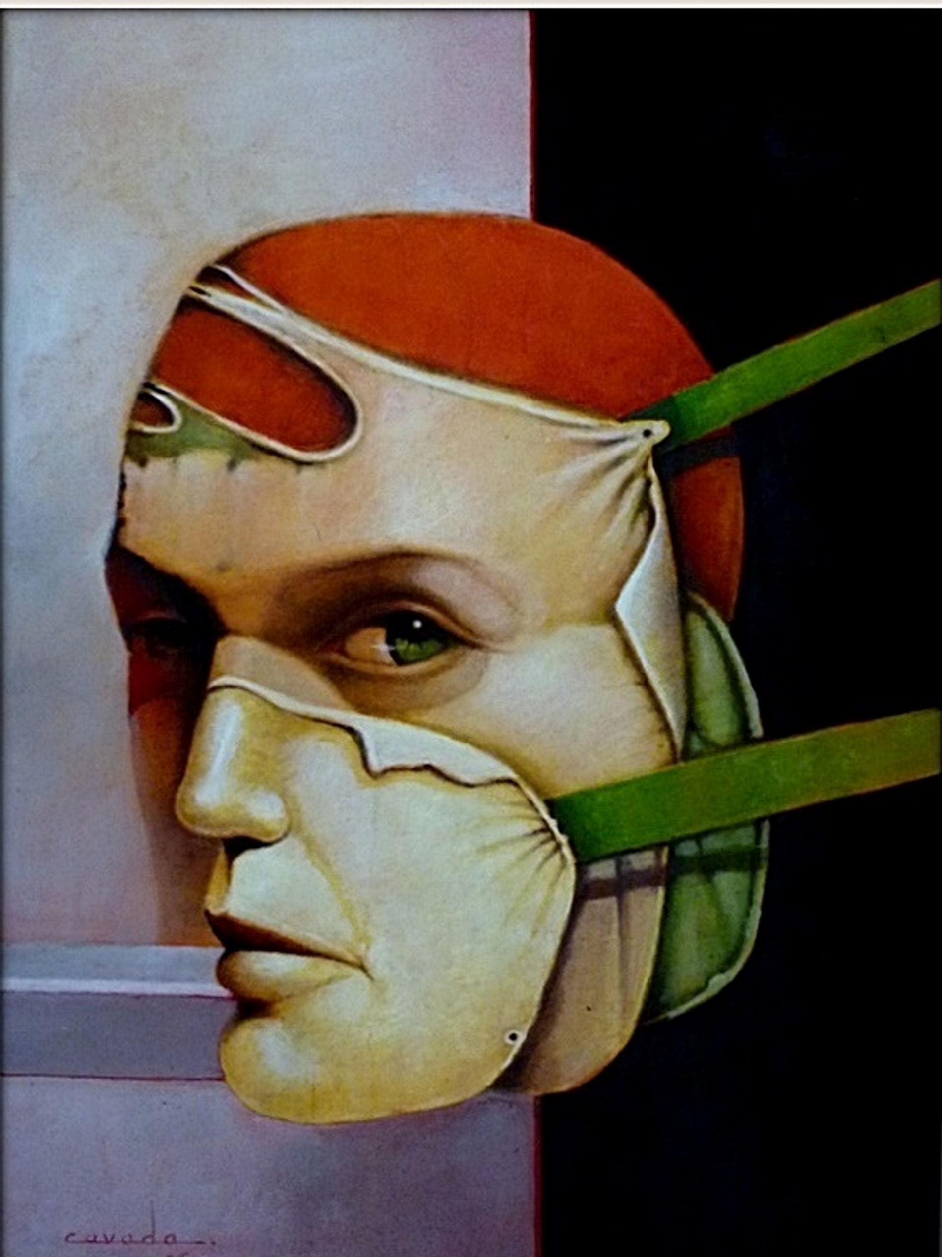 OLEO SOBRE LIENZO, RETRATO MASCULINO, DENTRO DEL ESTILO REALISMO FANTÁSTICO.