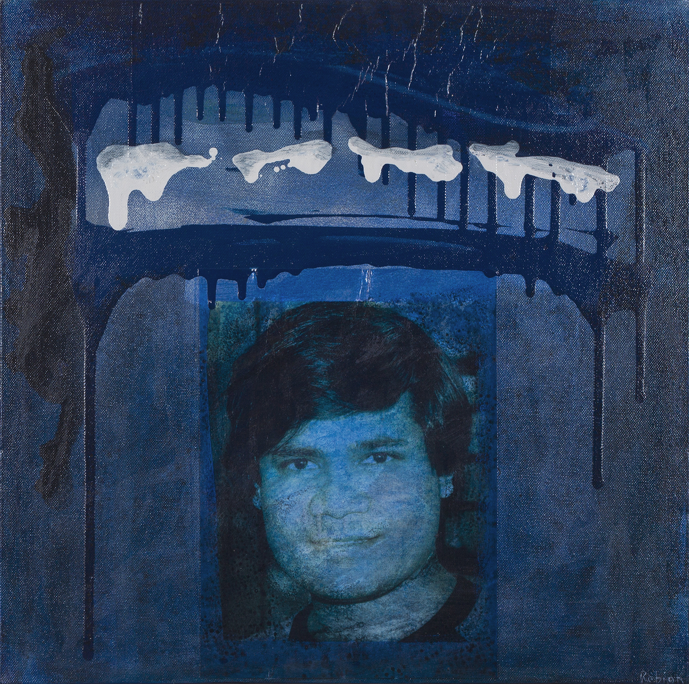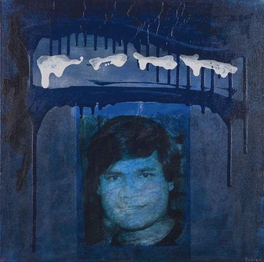 Technique mixte sur toile; photographie noir et blanc retravaillée à la peinture (acrylique) sur toile.
