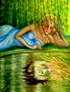 Description de l'oeuvre Jeune fille imaginant le visage de son bien-aimé miroitant dans l'eau