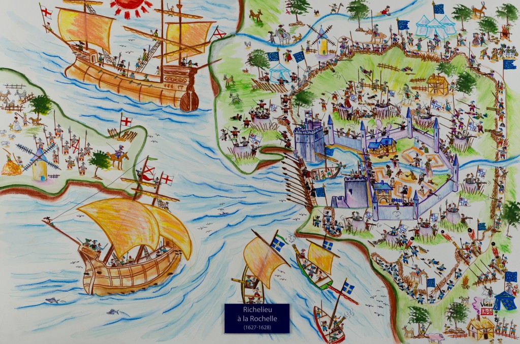 Le Cardinal de Richelieu fait le siège de la Rochelle défendue par les Huguenots français.