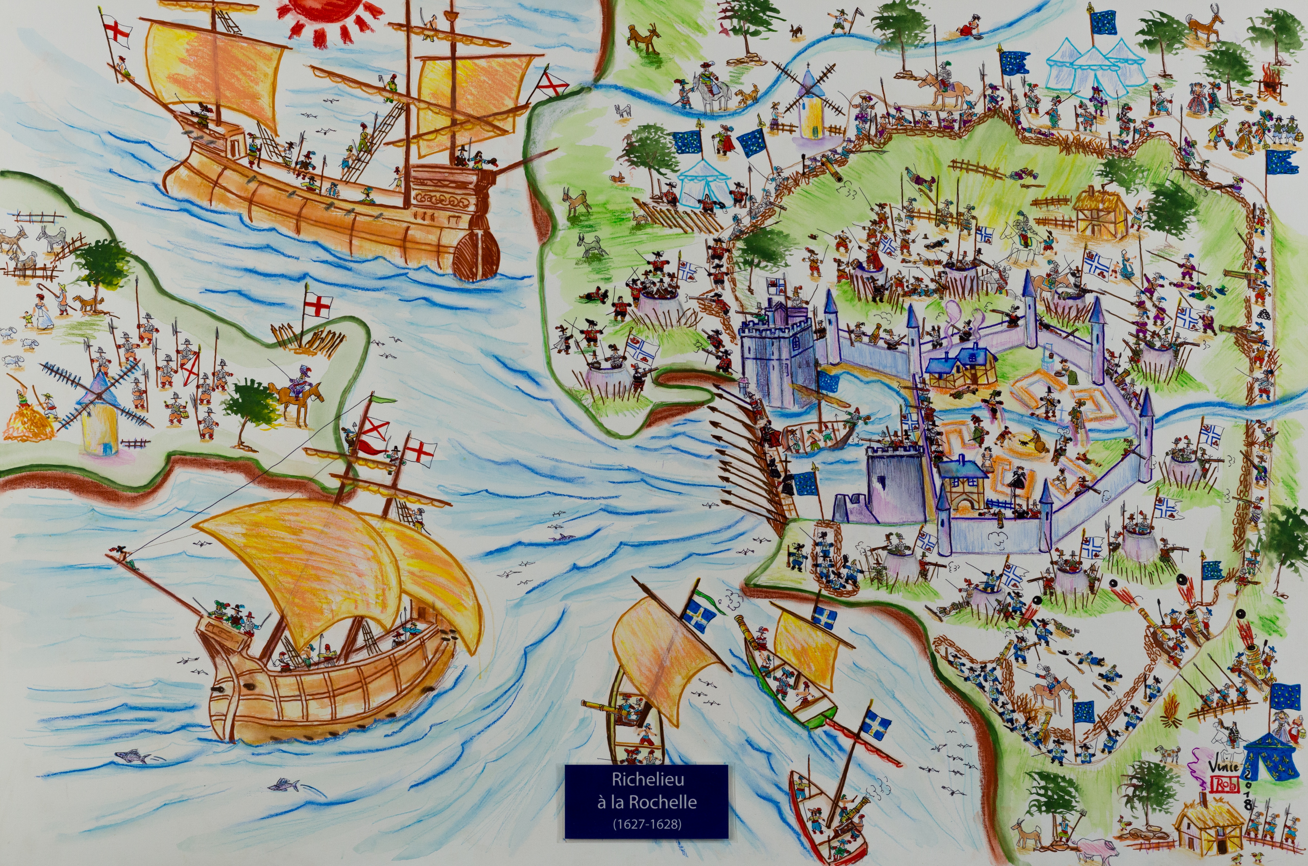 La ville peut être ravitaillée aussi par mer. Richelieu fait construire une digne de pieux en bois pour interdire le port aux anglais. La famine est terrible dans la cité.