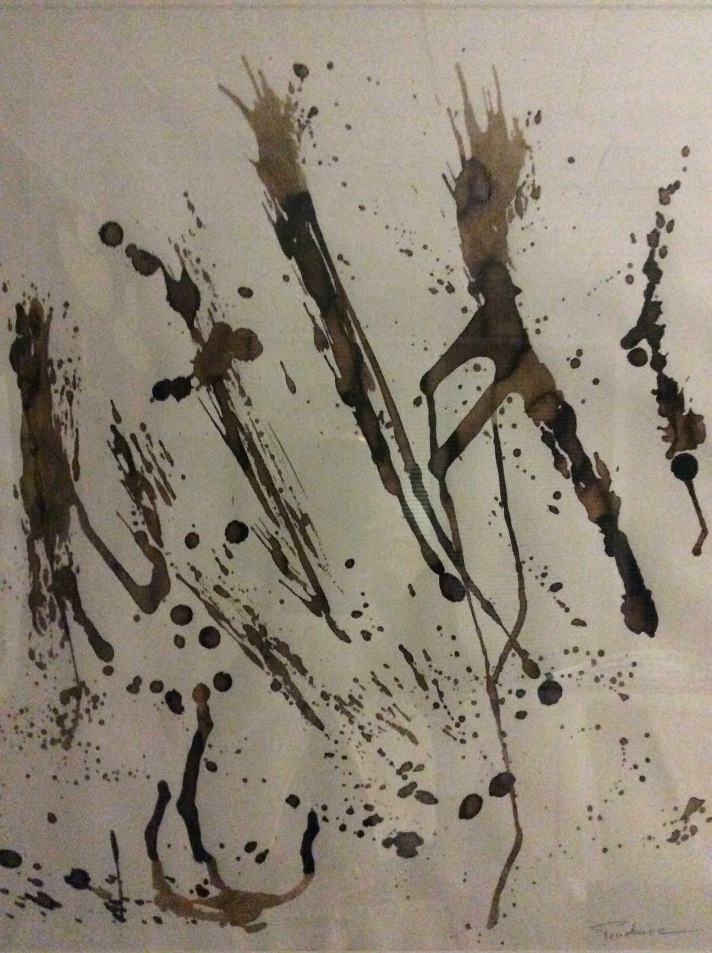 Description de l'oeuvre Brou de noix sur papier. Oeuvre réalisée avec mon souffle