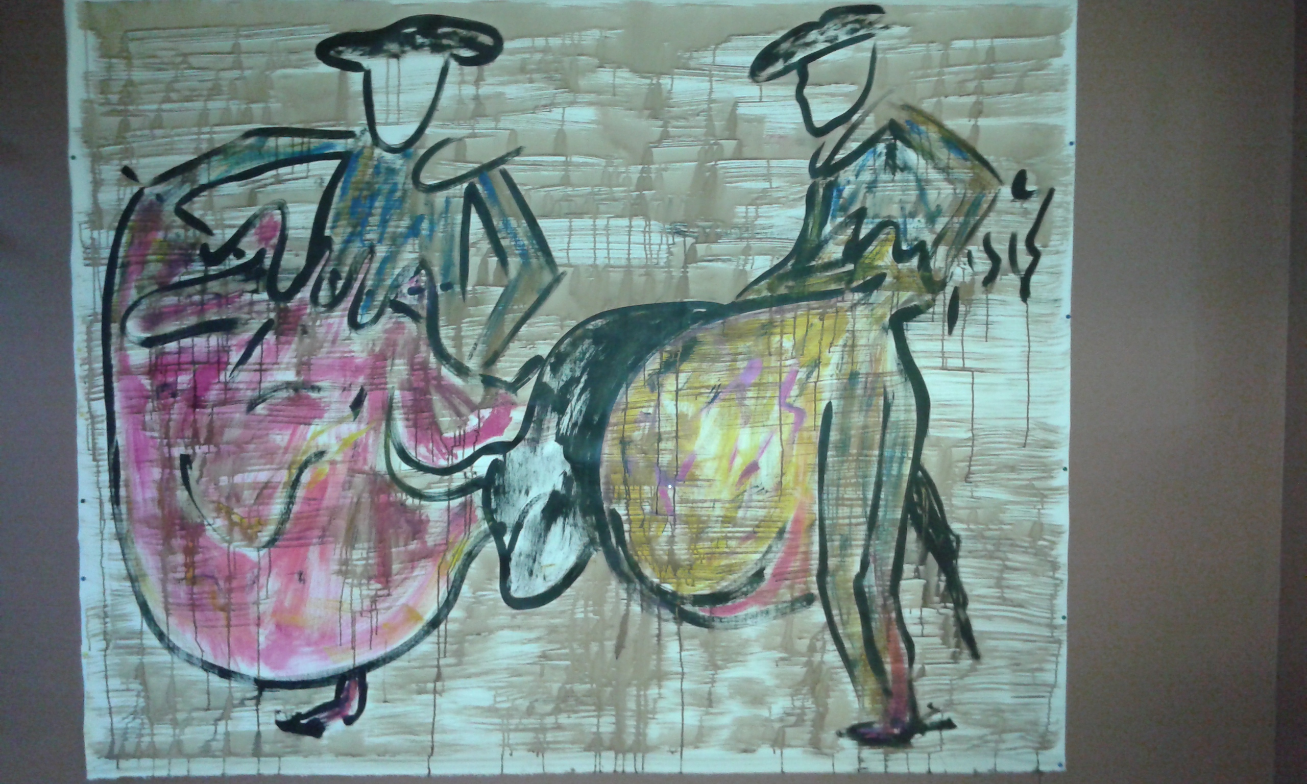 Mots clés : Peinture / Acrylique sur toile / Animaux, Personnages