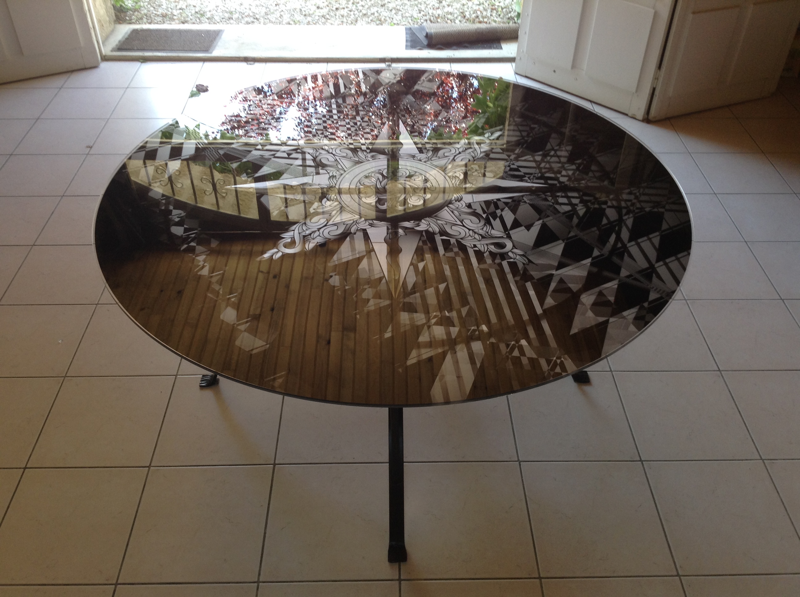 Plateau de table en plexiglas (1cm d'épaisseur) imprimé à l'envers