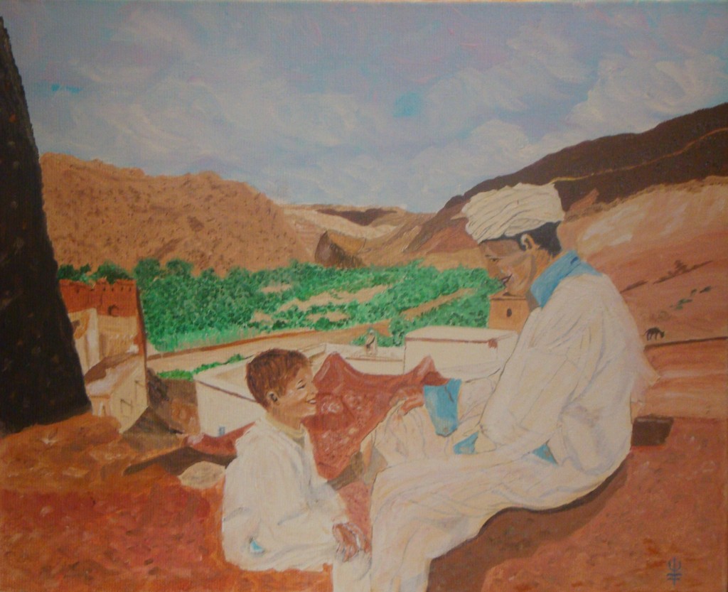 Description de l'oeuvre L'enfant écoute avidement avec fierté et amusement les récits de l'ainé