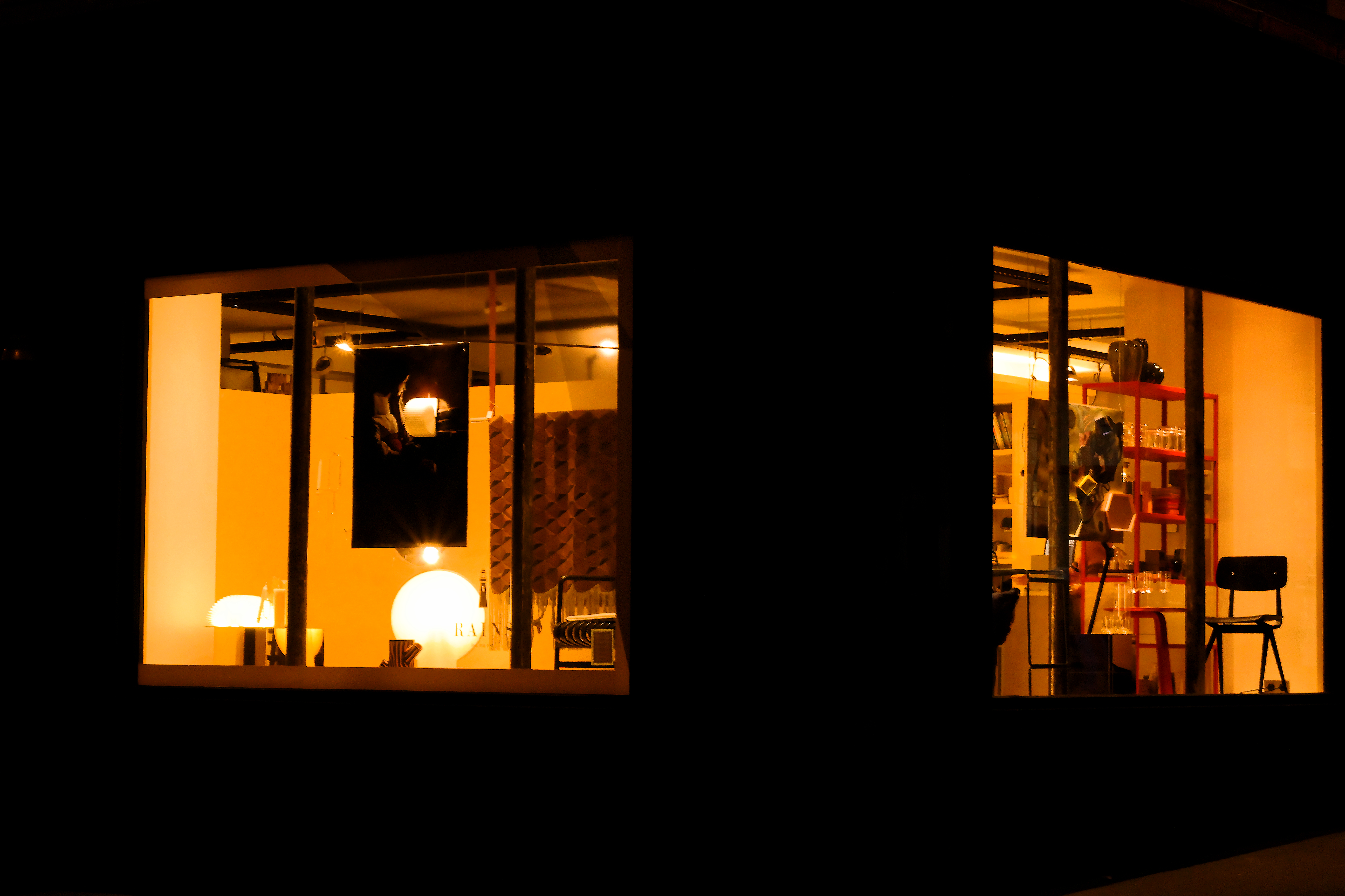 Une boutique dont seules les lumières intérieures se détaches.