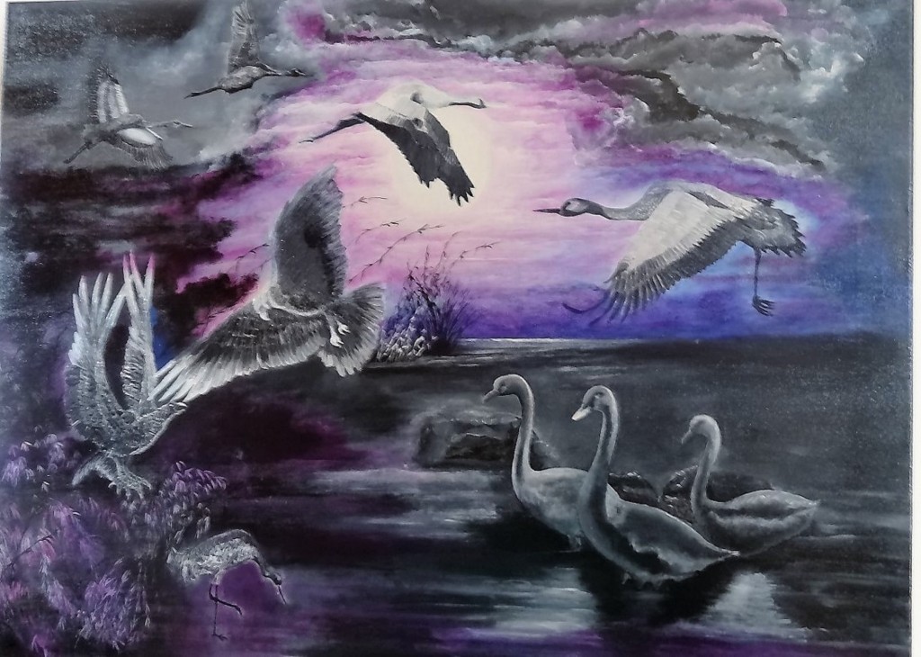OU L ON VOIT DES VOLS DE GRUES ...EN LEVER DE SOLEIL SUR DES PAYSAGES DE BAIE DE SOMME ...ET DES OIES PATAUGEANTS DANS UN MARAIS ....